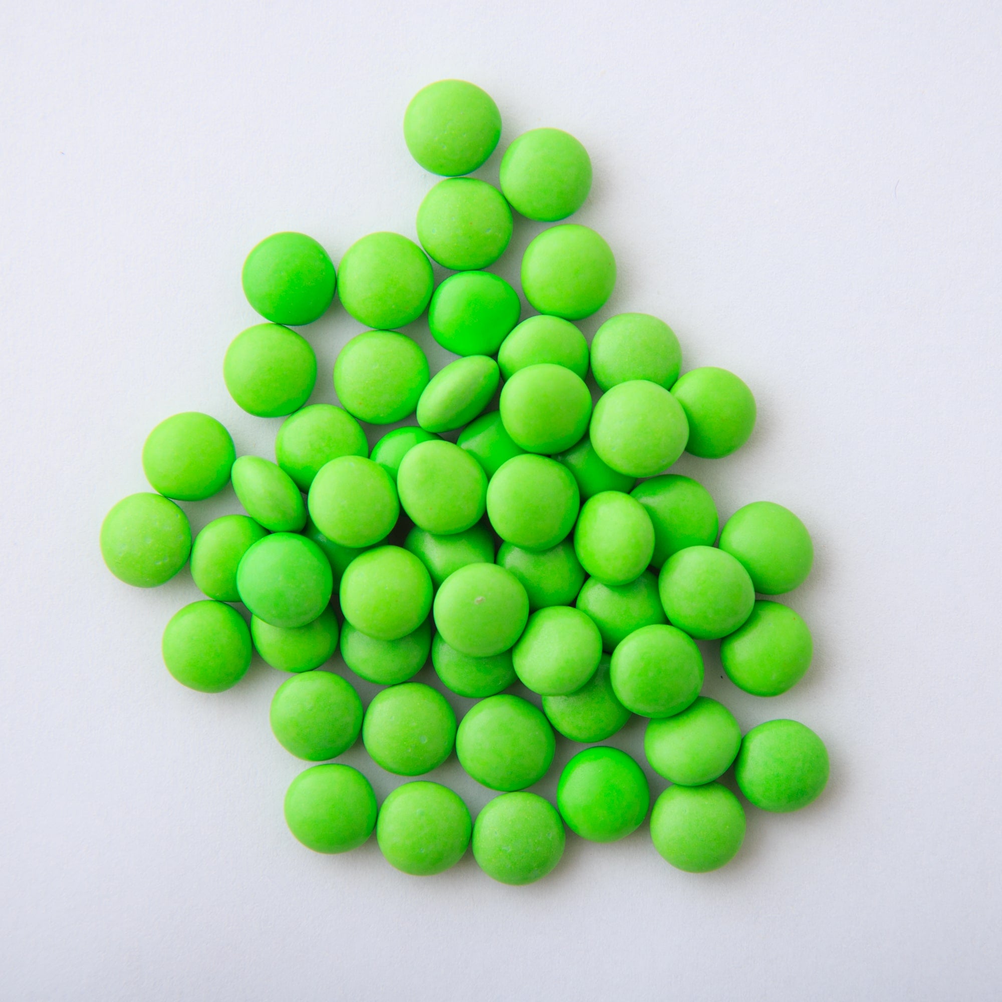 Round tablets the size of a Penny available in a variety of wrappers and flavors.